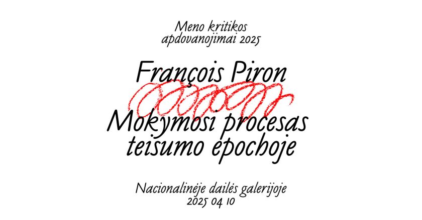 Kviečiame į viešą paskaitą, kuri vyks ketvirtadienį, balandžio 10 d., 18.30 val. LNDM Nacionalinėje dailės galerijoje (Konstitucijos pr. 22, Vilnius). Pranešimą skaitys prancūzų meno kritikas, leidėjas ir kuratorius François Piron. Jis pasidalins savo profesine patirtimi meno kritikos, rašymo, redagavimo ir leidybos srityse, pabrėždamas įsipareigojimo atvirumui, smalsumui, draugystei ir mokymuisi svarbą. Šia paskaita pradedama šių metų Meno kritikos apdovanojimų renginių programa, skirta diskusijoms apie meno kritiką, meno rašymą ir kritines praktikas. „Dvidešimt penkeri praktikos metai neišsklaidė abejonių. Kai manęs paklausia, ką veikiu, žodžiai niekada nesusidėlioja ta pačia tvarka. Koks žmonių, tokių kaip aš, tikslas? Atsigręžus atgal atrodo, jog padedame išsaugoti tai, kas kitu atveju galėtų būti pamiršta. Kaip tai darome? Visais…