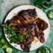 Viską kepkite apie 25–30 minučių, kol ančiukas gražiai apskrus, o daržovės suminkštės ir lengvai karamelizuosis. Patiekiant keptą ančiuką galima sudėti ant smulkiau pjaustytų iceberg salotos lapų arba tiesiog serviruoti kartu su orkaitėje keptomis daržovėmis.